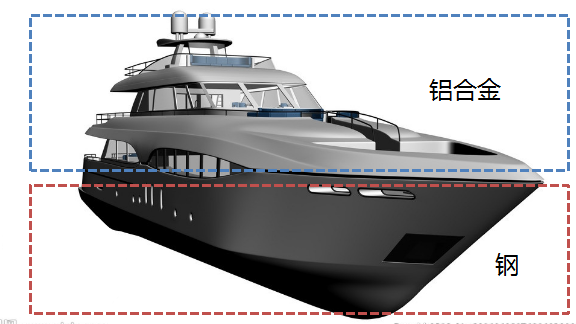 在現(xiàn)代造船業(yè)尤其是高速船舶建造中,為了實(shí)現(xiàn)輕量化,提高船舶航速,往往會采用密度較低的鋁合金結(jié)構(gòu)。而出于強(qiáng)度、運(yùn)載能力、成本及耐久性等方面考慮,通常主船體是鋼制結(jié)構(gòu),鋁合金僅用于上層建筑以減輕重量及降低重 心,以此提高船體的性能。因此船體上下層之間鋁與鋼的高強(qiáng)度連接關(guān)系到整艘船的巡航性能及使用壽命。